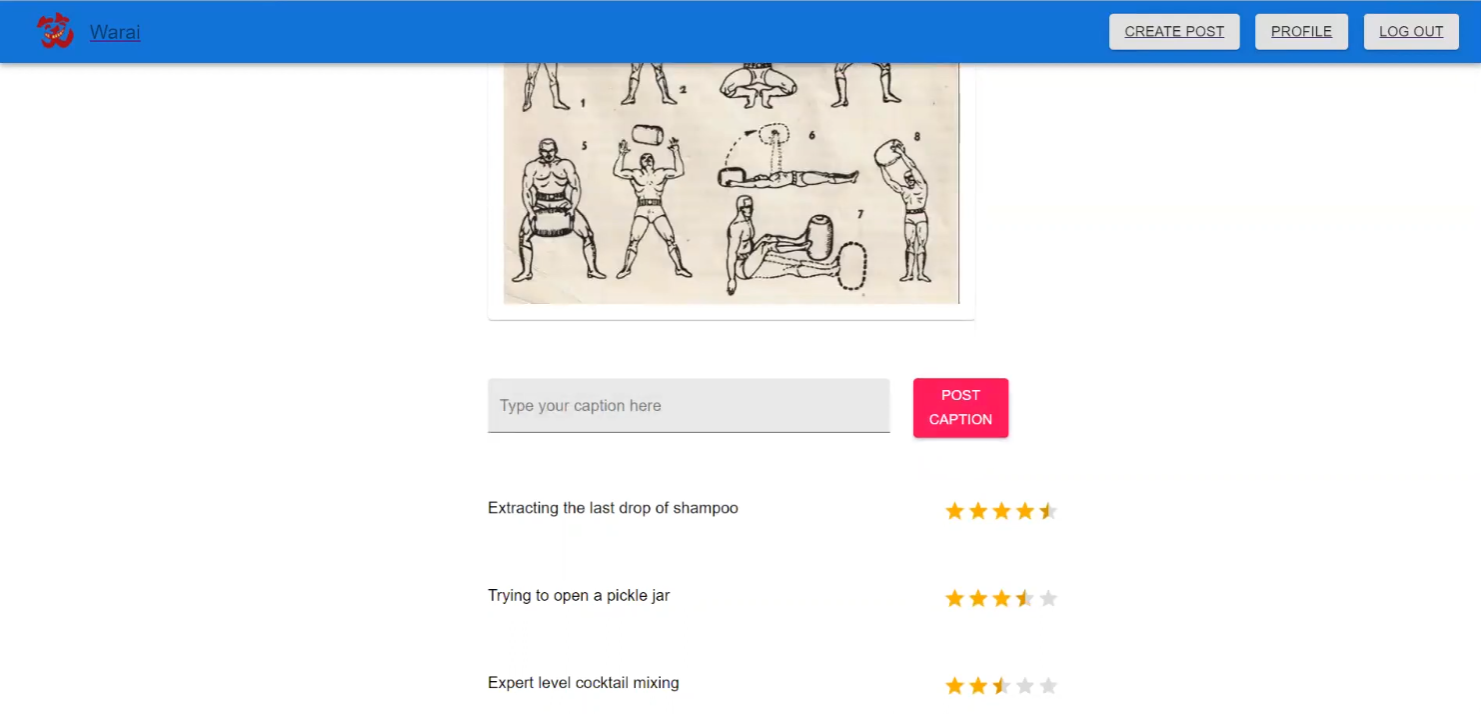 Clicking on a post on the landing page directs the user to that post's individual post page. On the individual post page a text field for the user to write a caption is available. Typing and posting a caption alerts the user that the caption was posted successfully and the page will refresh. Existing caption can also be rated using a five-star rating system. Comments can be rated by hovering over the five stars to the right of any caption and clicking a half or full star to submit a rating.