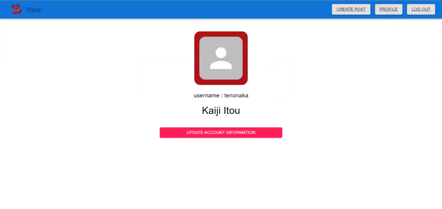 Users who have an account on the website, also have a user profile page. This page is visible only if the user is logged-in. On this page, the user can view their account information including their profile picture, username, first and last name. This page also contains a button that if clicked, it will open the update account information page. The user profile picture has a file size limit of 1 megabyte and can be either a JPG or PNG file type.